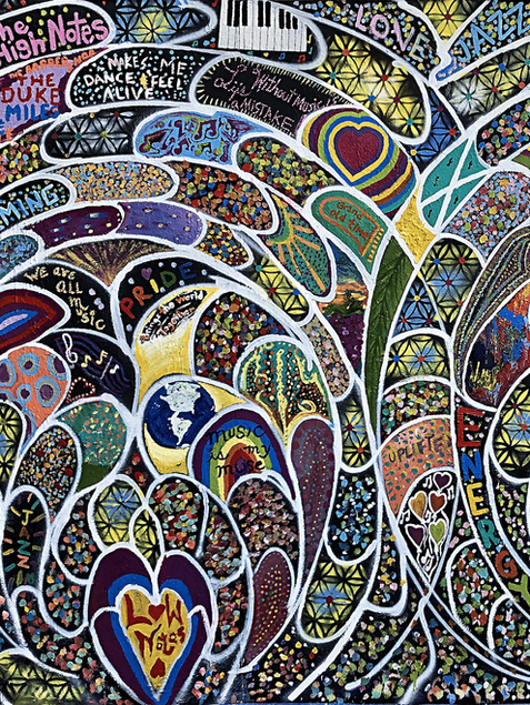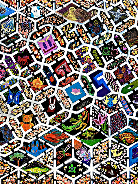 The art created through the EverybodyCanPaint project is vibrant, dynamic, and rich in collective expression. Each mural is a large-scale, geometric, and or more freestyle shaped design composition that blends the diverse artistic contributions of participants into a cohesive and visually striking piece. Felix’s designs typically feature bold, structured layouts—sometimes with radial symmetry, intricate patterns, or thematic imagery—that serve as a foundation for participants to add their own artistic marks. These contributions range from colorful brushstrokes and symbolic shapes to detailed figures and personal messages. The murals often incorporate themes of unity, joy, and creativity, with bright, energetic color palettes that reflect the diversity of the people who helped create them. Felix’s finishing touches bring harmony and refinement to the work. He enhances contrasts, sharpens lines, and integrates disparate elements into a unified whole, elevating the collective artwork to a professional, gallery-worthy piece while preserving its organic, community-driven essence. The final murals are bold, textured, and alive with movement, serving as a testament to the power of collaboration in public art. All art reproductions, and limited signed editions are by San Francisco Bay Artist Richard Art Felix and his EverybodyCanPaint.com collaborative participatory public art project. Available in photo prints, canvas prints, prints on metal or wood and more. All with many options to frame them to fit your environment if you like. All Prints are archival art collector quality. Available as reproductions and signed limited editions.